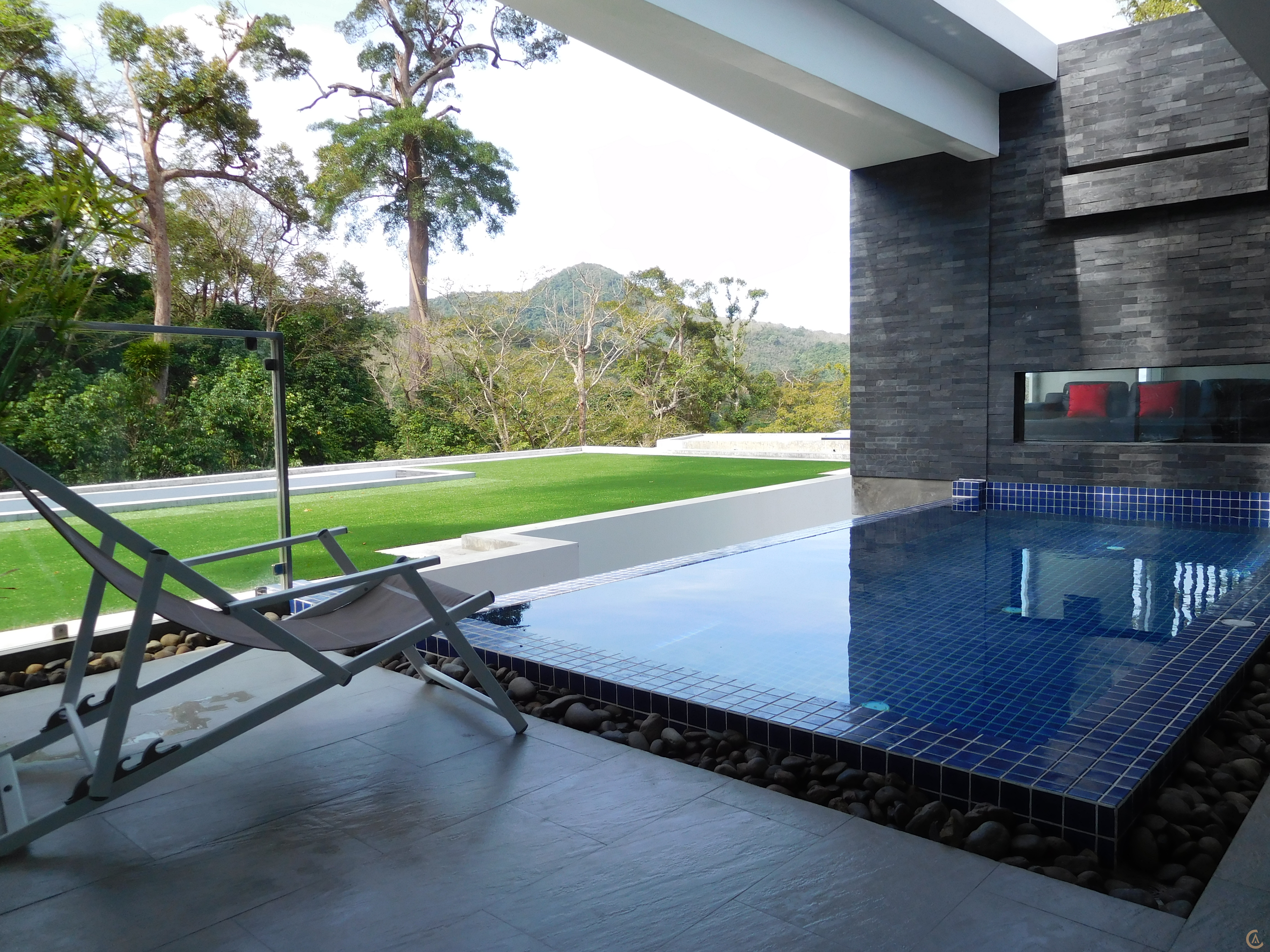 This 2 bedrooms detached villa is nestled at the back of Kamala in the lush green hill sidet with views over Kamala bay, out to the ocean and into the canopy of the adjacent forest. The villas in a modern open plan design of 175 sqm to ensure full use of the space.Private access to the villa is from the lower car park area. As you enter into the open plan kitchen and lounge area you are met with the initial view out into the forest canopy through the full length glass windows of the lounge area. This area also provides a small balcony which looks into the forest as well as a view out through the water fall into the swimming pool. The kitchen and breakfast bar looks out into the dining area and the swimming pool terrace and is accessed via sliding glass doors.The terrace area provides undercover outdoor dining, sundeck, infinity pool .The undercover terrace leads on to the two bedrooms.Bedroom 1 with ensuite and rain shower and the master bedroom with ensuite including: rain shower, separate bath and zen garden terrace. Both bedrooms are encased with glass sliding doors with views out over the sundeck, pool area and into the forest.