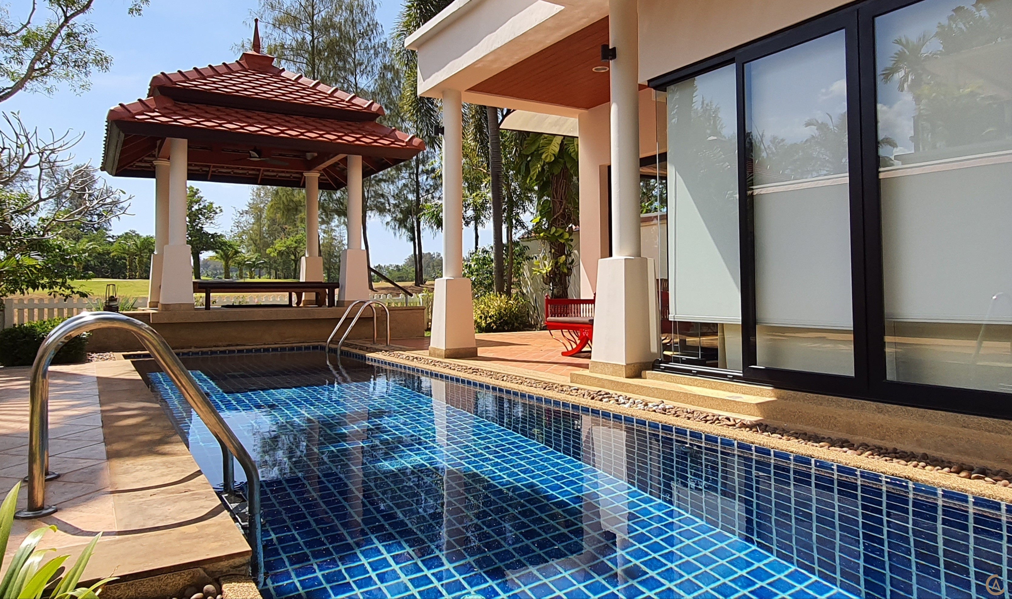 4 bedrooms and 4 bathrooms Study room Maid’s quarters Private pool (35 sqm) and sundeck this villa is after full renovation including brand new air conditioning door windo and built-in kitchen. FACILITIES: 24/7 security household and common area management professional gardening and landscaping free shuttle bus and ferry transfer around Laguna Phuket golf course few minutes drive to Villa Market Boat Avenue Port de Phuket Blue Tree