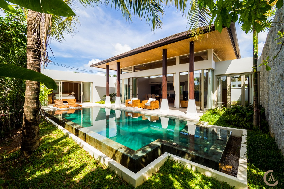The villa centers around a natural stone tiled swimming pool with a free-flowing floorplan that is capped by a vaulted teak wood ceiling and framed by concertina glass doors. The transom windows above these glass doors give added light and elegance to the main area of the home. To celebrate the idyllic outdoor ambience the eave has been overextended to create an added lounge or dining area on the terrace which is supported by striking pillars. The grand tile flooring in the front room matches that on the terrace for a seamless transition to the outdoors.The pristinely manicured Bangtao/Laguna neighborhood hosts numerous family oriented activities and is dotted with a plentitude of boutique shops and restaurants along this 8 km stretch of white sand. The rental price includes pool maintenance (twice a week) garden maintenance (once a week) and housekeeping (once a week).